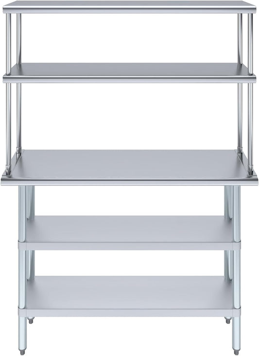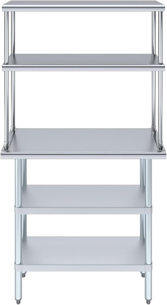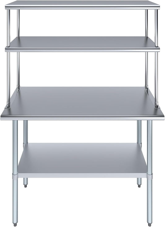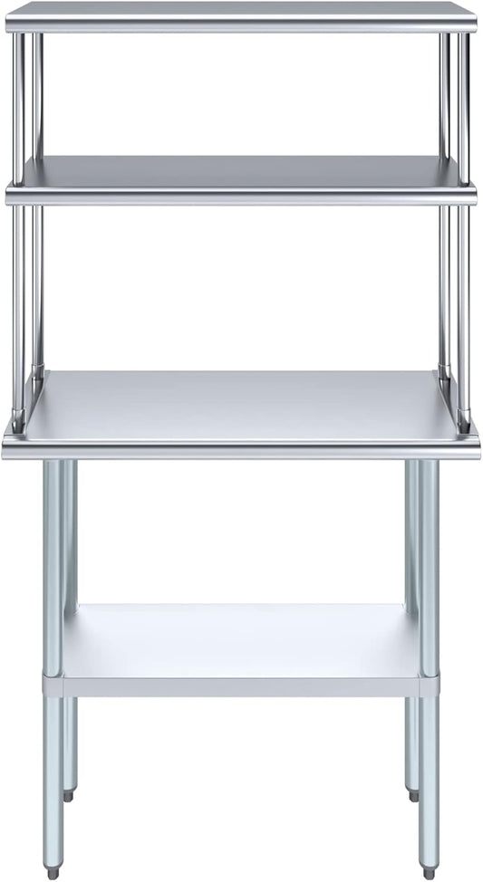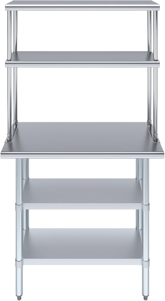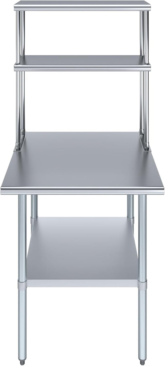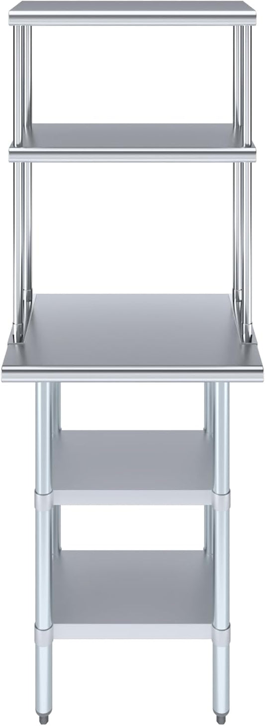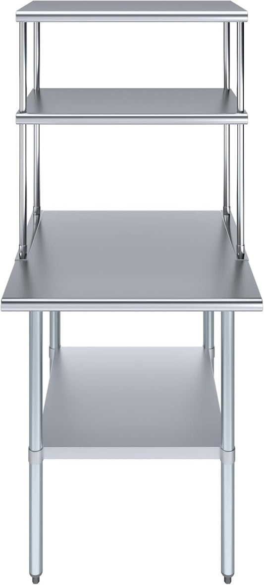 AmGood Stainless Steel Work Table Double Tier Overshelf | NSF (24" x 36" Work Table + 12" Overshelf)