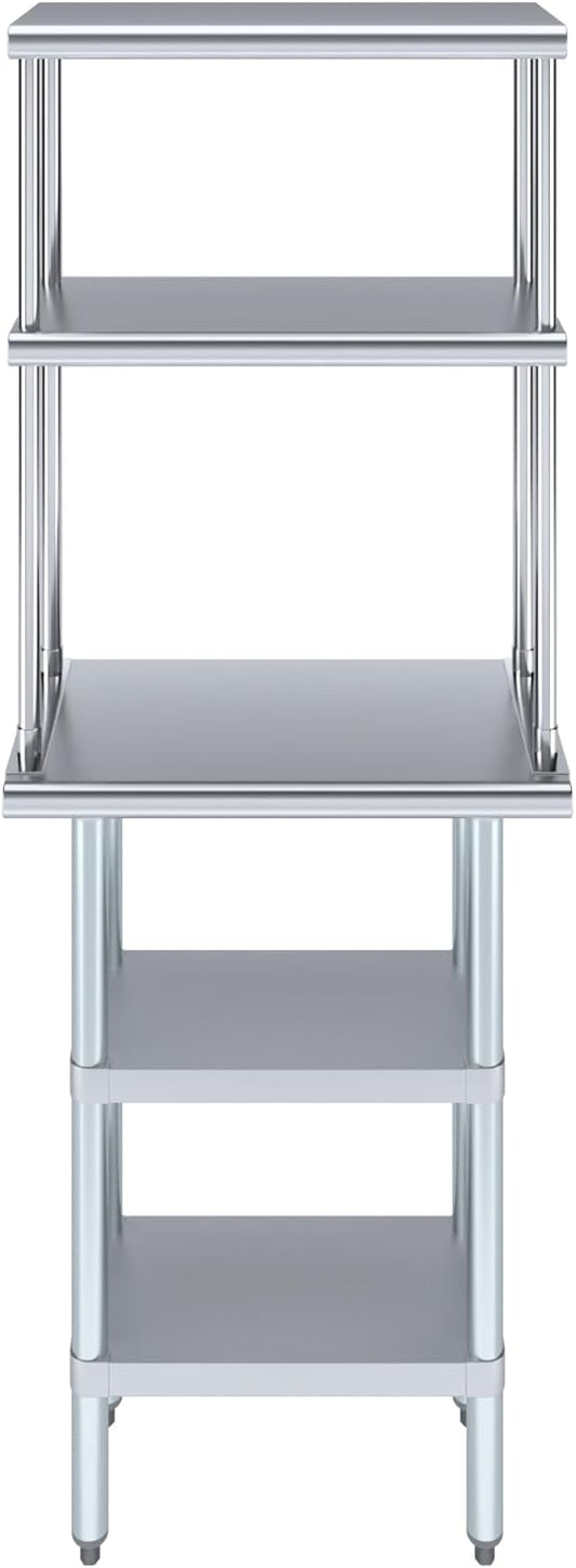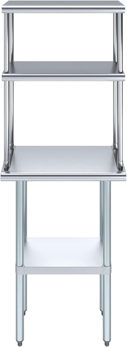 Amgood Stainless Steel Work Table Double Tier Overshelf | NSF (14" x 24" Work Table + 12" Overshelf)