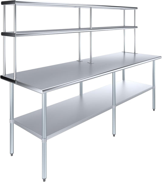 Amgood Stainless Steel Work Table Double Tier Overshelf | Metal Kitchen Prep Table & Shelving Combo (24" x 96" Work Table + 12" Overshelf)