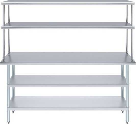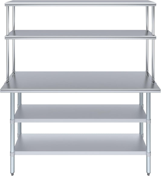 Amgood Stainless Steel Work Table Double Tier Overshelf | Metal Kitchen Prep Table & Shelving Combo (30" x 60" Work Table + 18" Overshelf)