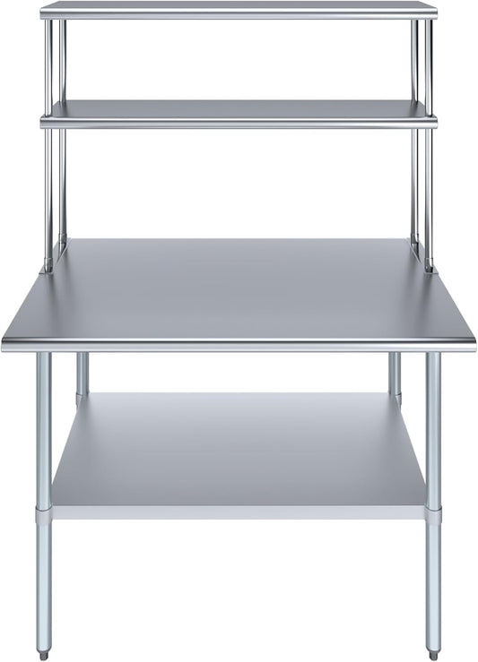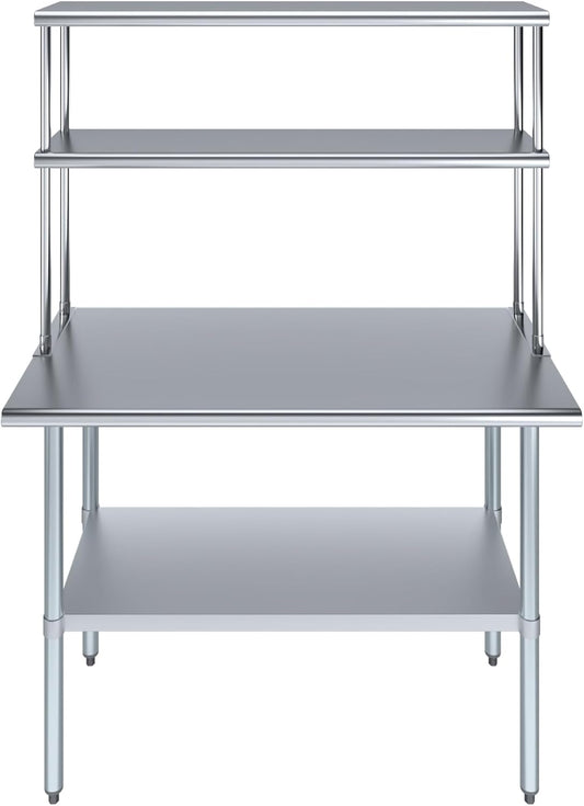 Amgood Stainless Steel Work Table Double Tier Overshelf | Metal Kitchen Prep Table & Shelving Combo (30" x 48" Work Table + 12" Overshelf)