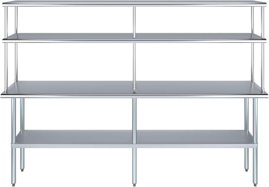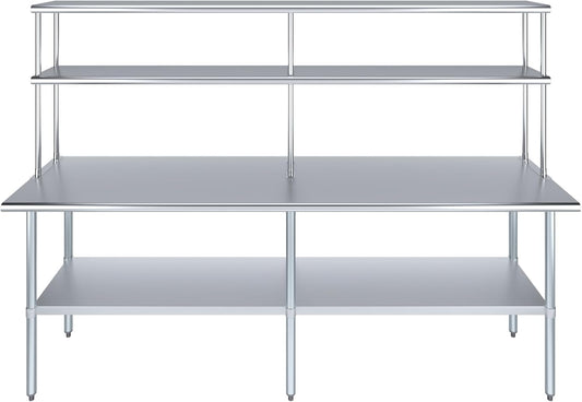 Amgood Stainless Steel Work Table Double Tier Overshelf | NSF (14" x 72" Work Table + 12" Overshelf)