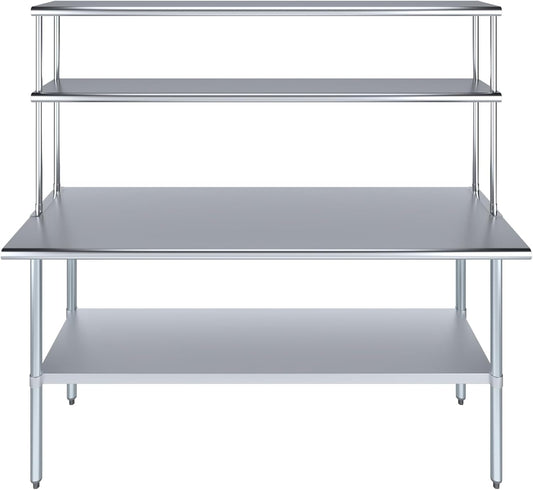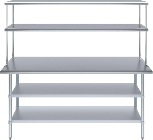 Amgood Stainless Steel Work Table Wide Double Tier Overshelf | NSF | Metal Kitchen Prep Table & Shelving Combo (14" x 60" Work Table + 12" Overshelf)