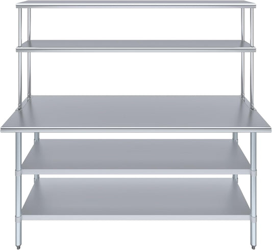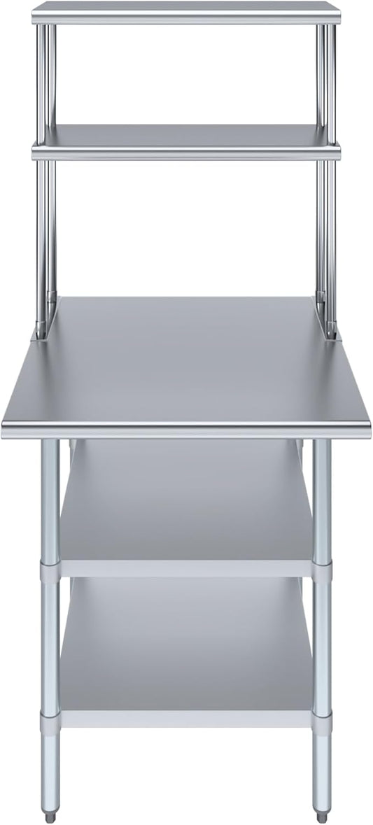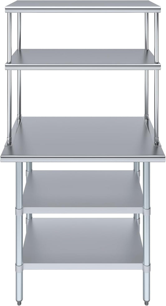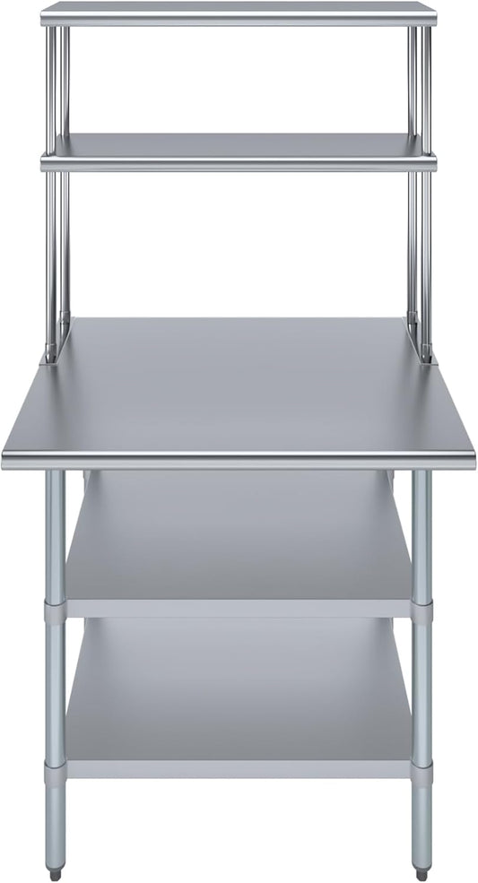 Amgood Stainless Steel Work Table with 2 Shelves | Metal Kitchen Prep Table & Shelving Combo (30" x 60" Table with 2 Shelves + 18" Overshelf)