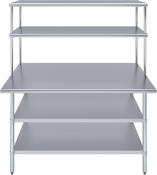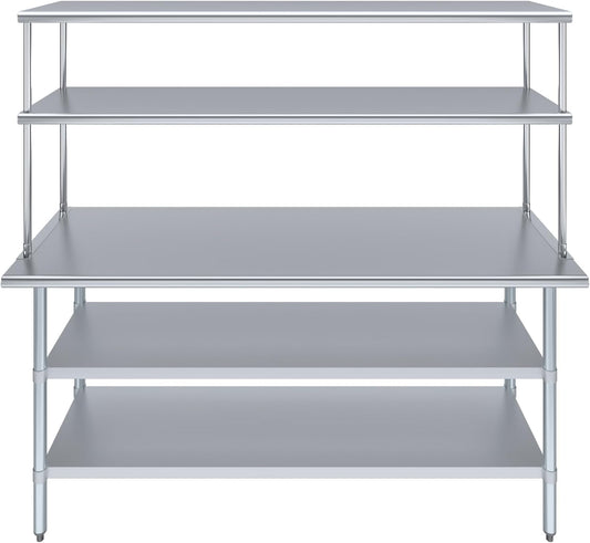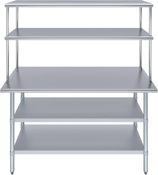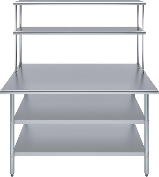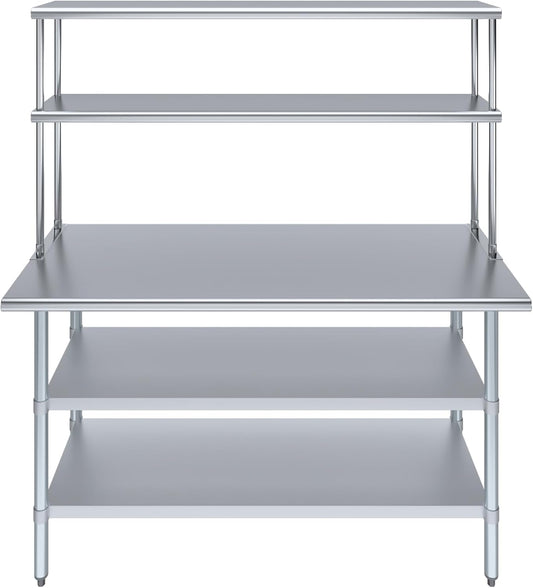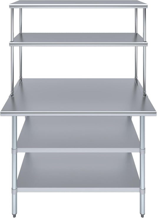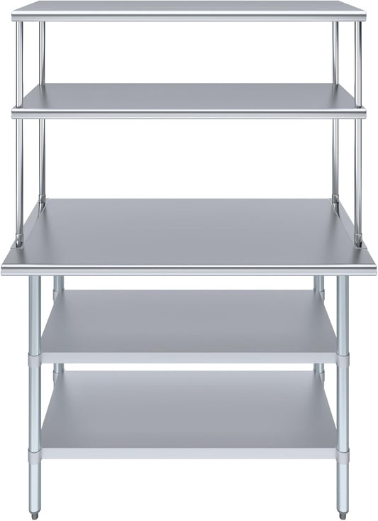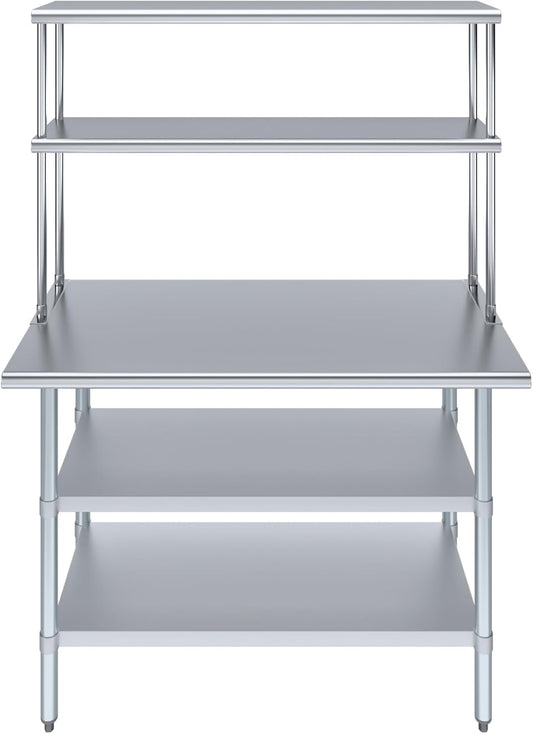 Amgood Stainless Steel Work Table with 2 Shelves | Metal Kitchen Prep Table & Shelving Combo (30" x 48" Table with 2 Shelves + 18" Overshelf)
