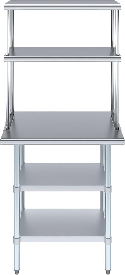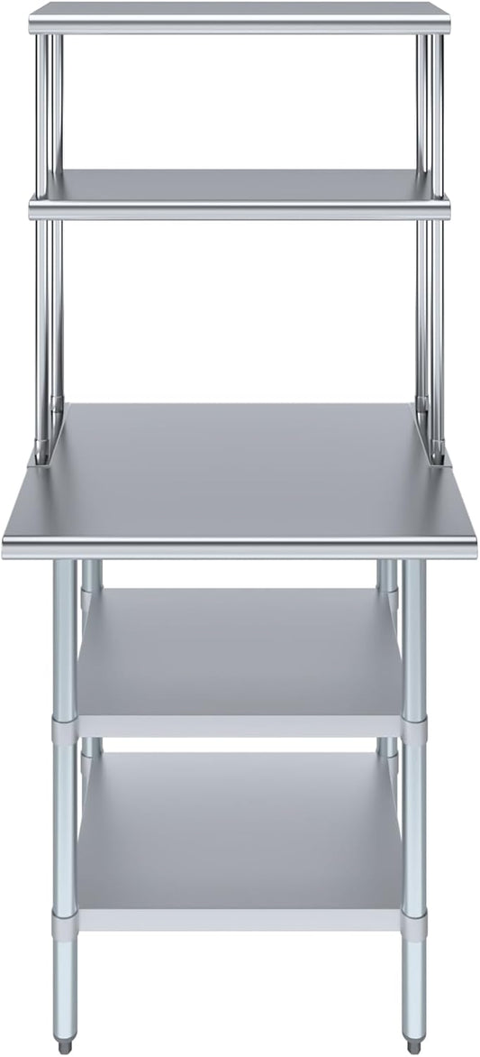 Amgood Stainless Steel Work Table with 2 Shelves | Metal Kitchen Prep Table & Shelving Combo (24" x 48" Table with 2 Shelves + 18" Overshelf)