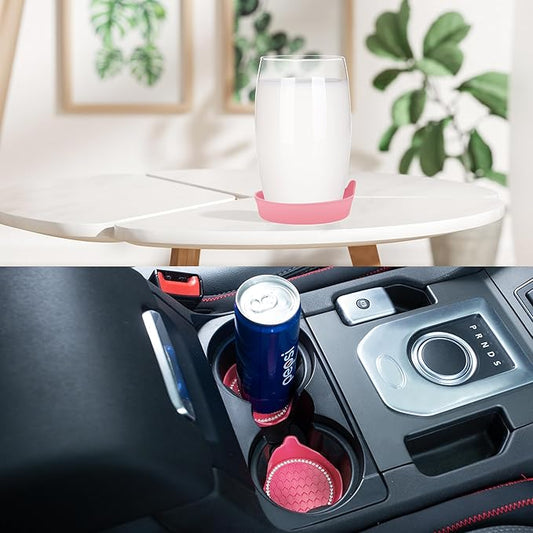 Amooca Car Cup Coaster Universal Non-Slip Cup Holders Bling Crystal Rhinestone Car Interior Accessories 2 Pack Peach Pink