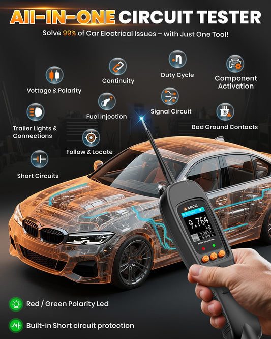 ANCEL PB500 Automotive Power Circuit Probe Tester Kit, 12/24V Car Electrical Short/Open Breaker Finder, AC/DC Diode Resistance Frequency Injector Relay Tester, Duty Cycle,Digital Multimeter/Ohmmeters