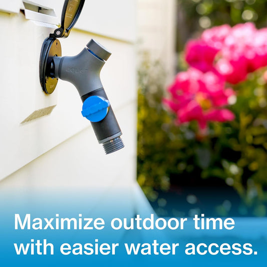 Aquor Comfort Grip VB Hose Connector – Garden Hose Connector with Built-In Vacuum Breaker & Ball Valve, Backflow Prevention, Ergonomic Non-Slip Grip – Slate Gray, Compatible with Aquor Hydrants