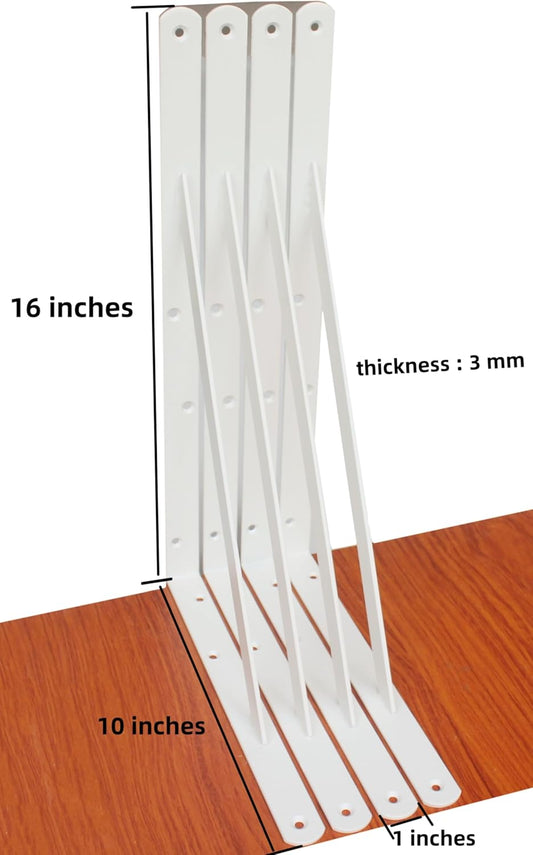 12 Pack L16 x H 10" White Heavy Duty Shelf Brackets with Screws Metal Shelf Brackets Shelf Support Angle Brackets for Shelves L Brackets Heavy Duty Floating Shelf
