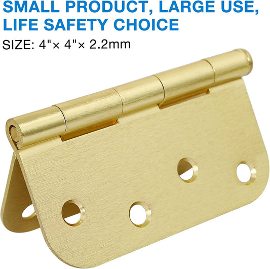 12 Pack Interior Door Hinges Brushed Brass 3.5 inch X 3-1/2" 5/8 Radius,3 ½"Satin Gold Round Standard Hinge for Single Doors DIY Assembly Bifold Table Hardware Kit House Accessories Home Eseentials