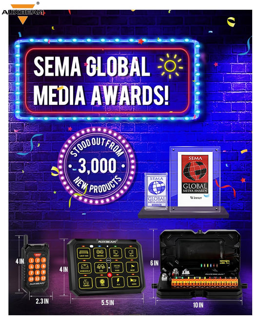 Auxbeam RGB 12 Gang Bluetooth Switch Panel AC-1200 w/165FT Long Range 433MHz Wireless Remote Control, Auto-Dimmable Panel w/Toggle Momentary Pulsed, Unique Patented Design Switch Pod Waterproof