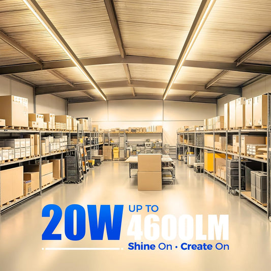 Barrina (Pack of 6) LED T5 Integrated Single Fixture, 4FT, 2200lm, 4000K (Daylight Glow), 20W, Utility Shop Light, Ceiling and Under Cabinet Light, Corded Electric with Built-in ON/Off Switch