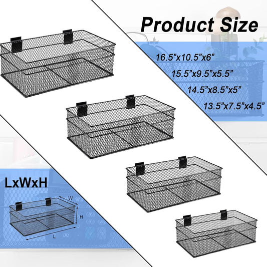 Barydat 4 Pcs Slatwall Basket Set Ventilated Metal Slatwall Basket Hanging Wire Bins Wall Mounted Accessories for Panel Garage Storage Display Organizing(Big Size,Black)