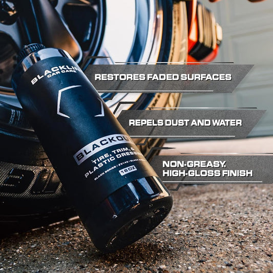 Blackline Car Care - Blackout Trim and Tire Dressing for Plastic, Rubber, Vinyl, and Tires Safe for Cars, Trucks, SUVs & More - 16 fl OZ