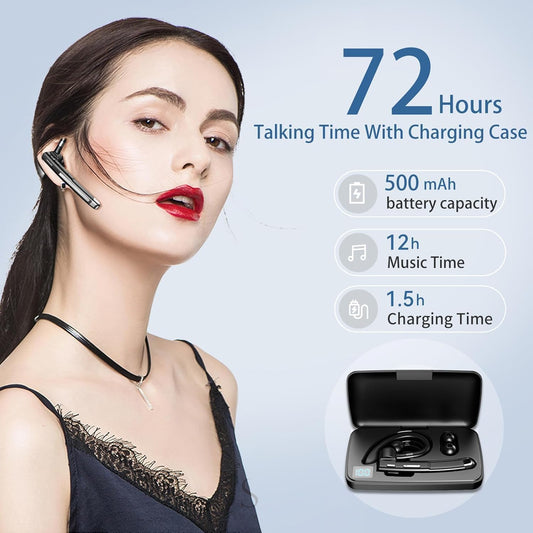 Bluetooth Headset, Wireless Bluetooth Earpiece with 500mAh Charging Case 72 Hours Talking Time Built-in Microphone for iOS Android Cell Phone, V5.1 Hand-Free Headphones for Trucker, Office