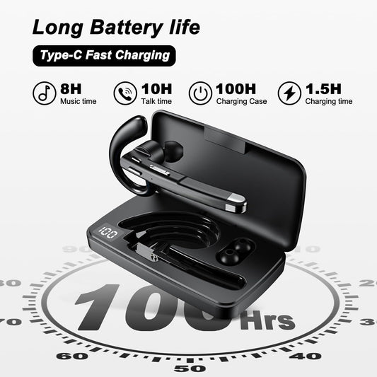 Bluetooth Headset, Wireless Bluetooth Earpiece with ENC Noise Canceling Mic, 120Hrs Talk Single-Ear Headphones, LED Display, IPX7 Waterproof Hand-Free Earphone for Business/Trucker/Driver, Blcak