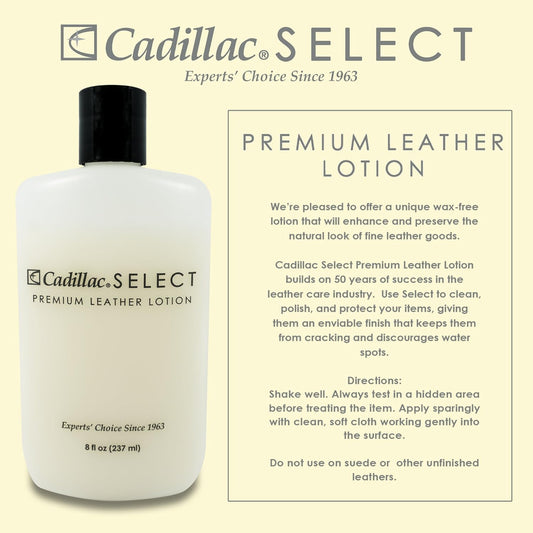 Cadillac Select Leather Lotion Cleaner and Conditioner- For Handbags, Sofas, Jackets, Furniture, Purses, and More