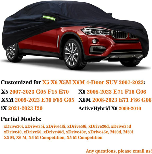Car Cover Compatible with BMW X5 X5M(2007-2025) X6 X6M(2008-2025), Custom Waterproof All Weather Car Cover with Cotton Lining, Outdoor Rain Cover for X5 X6 F15 G05 F16 G06 F85 F95 F86 F96