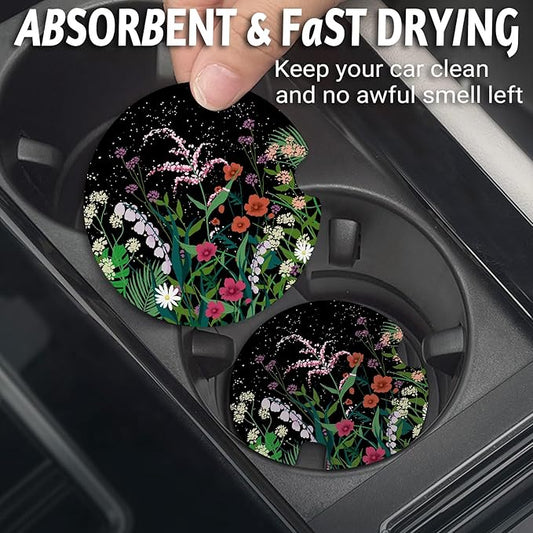Car Coasters for Cup Holders,2.75" Anti Slip Rubber Mat with A Finger Notch, 2 Pack Car Cup Holder Coasters for Car Interior Accessories for Women Men Flower