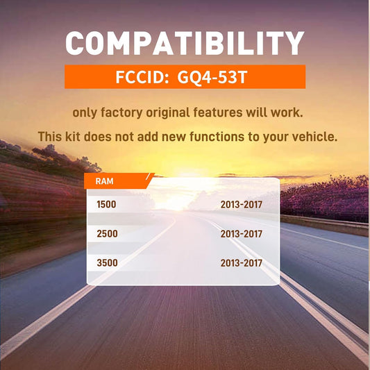Car Key Fob Remote Replacement Kit Fits for Dodge RAM 1500 2500 3500 2013 2014 2015 2016 2017 GQ4-53T Keyless Entry Remote Control