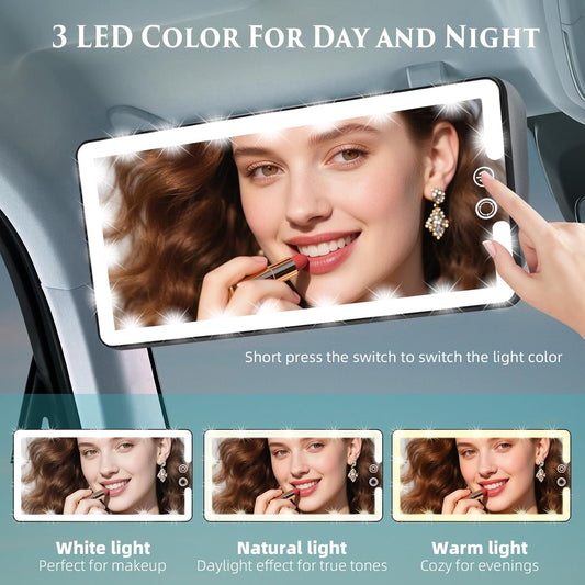 Car Sun Visor Vanity Mirror with Lights & 20X Magnification, Led Light up Makeup Mirror for Sun Visor, Rechargeable 3 Colors Dimming Light, Universal Accessories for Car SUV Truck
