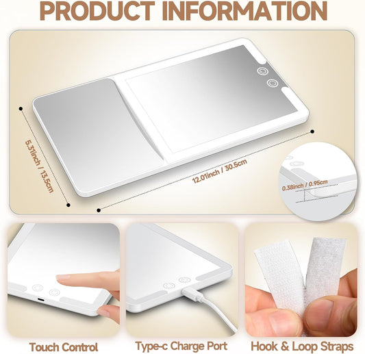 Car Sun Visor Vanity Mirror Compatible for Tesla Model 3 Y S X, Makeup Mirror with 3 Light Modes, Dimmable Touch Screen, Rectangular White, Car Vanity Mirror with Lights