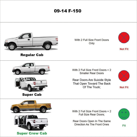 Chrome Side Window Visors Wind Vent Deflector for 2009-2014 Ford F150 Supercrew/Crew cab with 4 Full Size Doors,4pcs Outside Mount Tape-On Chrome Nice Sun Rain Guards Set 94155Y