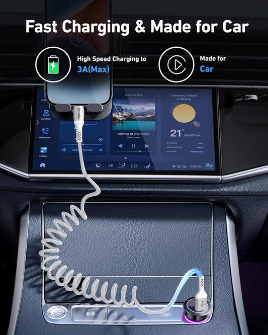 Coiled USB C to Lightning Cable, 2 Pack Retractable iPhone Charging Cable for Car, 3FT USBC to Lightning Cable for iPhone 14 13 12 11 Pro Max Mini 10 8 7 Plus XR XS SE, AirPod