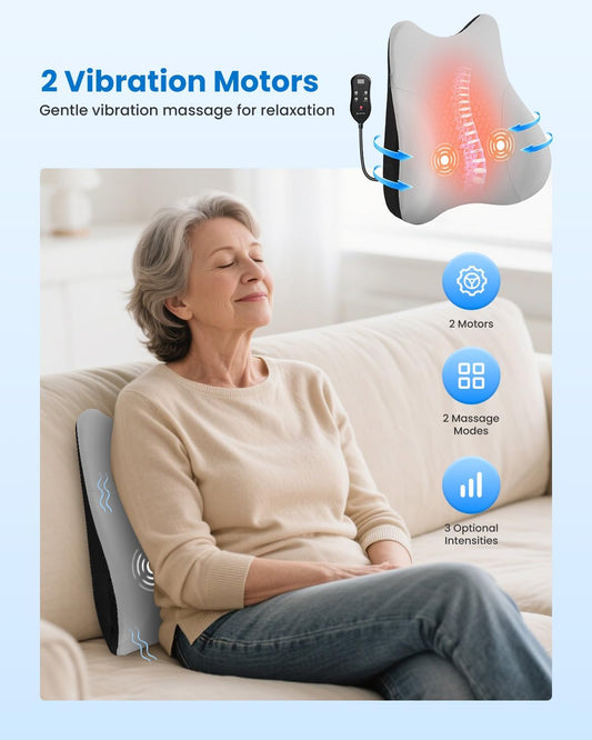 COMFIER Lumbar Support Pillow for Office Chair, Heated Back Support Pillow with 3 Vibration Modes & 3 Intensities, Ergonomic Back Support Cushion for Car,Recliner,Gaming Chair