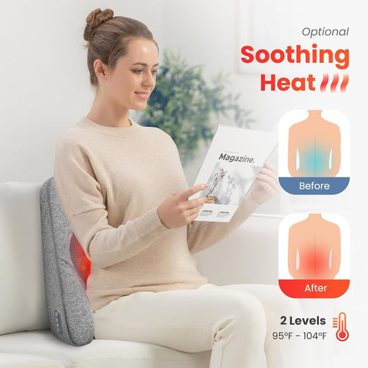COMFIER Back Lumbar Support Pillow for Office,Car,Heated Back Support with 4 Shiatsu Massage Heads & Heating Function, Memory Foam Lumbar Pillow for Computer Gaming Chair-Gray