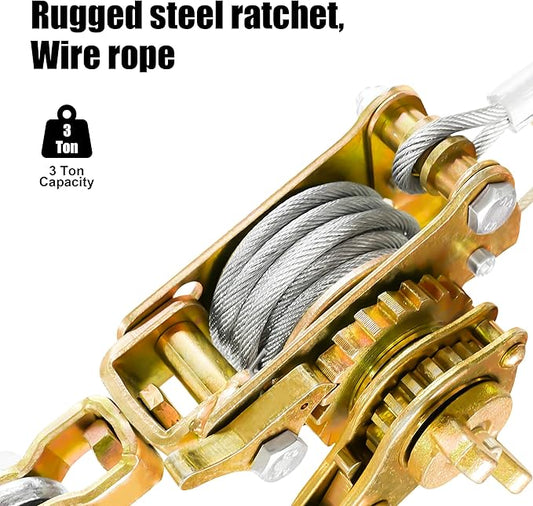 Come Along Winch 3 Ton Cable Winch Puller Double Rope 10Ft Heavy Duty Hand Puller Double Gear 6600LB with 2 Hooks Cable Ratchet Puller for Lifting Pulling