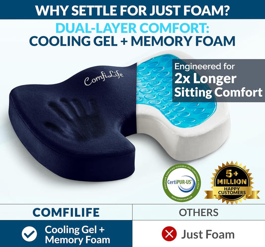 ComfiLife Gel Enhanced Seat Cushion – Office Chair Cushion – Non-Slip Gel & Memory Foam Coccyx Cushion for Tailbone Pain - Desk Chair Car Seat Cushion Driving - Sciatica & Back Pain Relief (Navy)