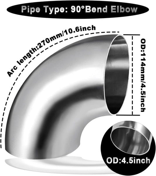 Cotonake 4.5 Inch Exhaust Elbow Pipe 90 Degree Bend Elbow for Car Modified Exhaust System 4.5" Piping Silver Tone,Stair Handrail (1pcs)
