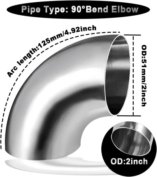 Cotonake OD 2 Inch 90 Degree SS304 Stainless Steel Bend Tube Exhaust Elbow Pipe for Car Modified Exhaust System 2" Piping Silver Tone,Stair Handrail (1pcs)
