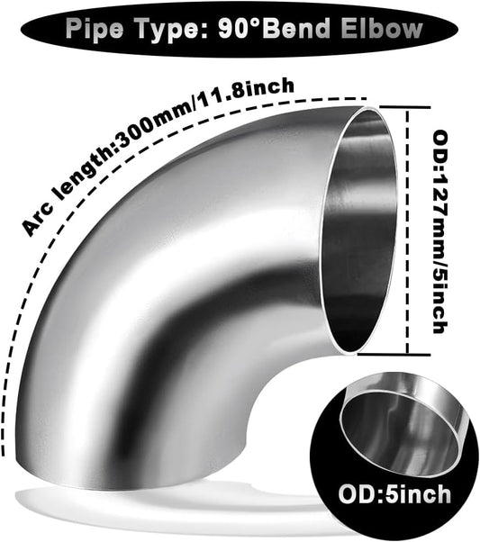 Cotonake OD 5 Inch 90 Degree SS304 Stainless Steel Bend Tube Exhaust Elbow Pipe for Car Modified Exhaust System 5" Piping Silver Tone,Stair Handrail (1pcs)