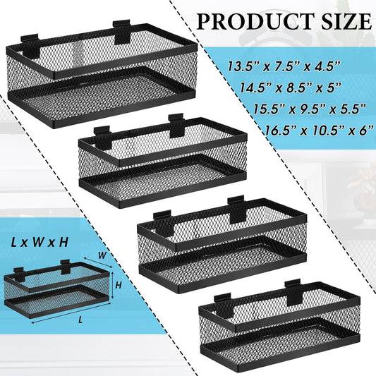 Coume 4 Pcs Black Slatwall Baskets 4 Size Metal Mesh Wire Basket for Slatwall Panels Ventilated Wall Mounted Hanging Accessories for Home Garage Retail Store Display Organizing (Big Size)