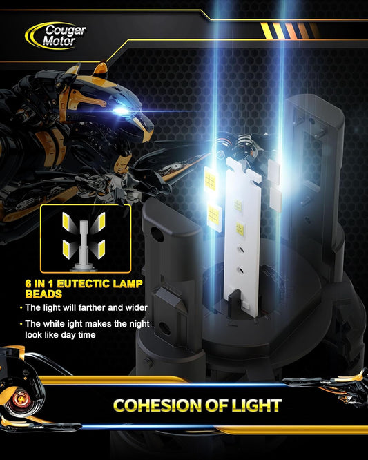 Cougar Motor H11 Bulbs, H11 Light Bulb H8 H9 Fog Lights 6500K White Non-Polarity H11 Fog Bulb Plug and Play - Pack of 2