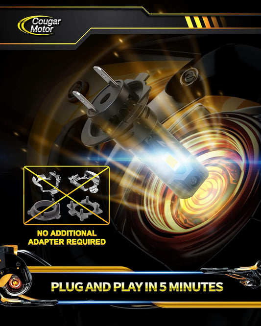 Cougar Motor 9007 Bulbs, HB5 Fog Lights 6500K White Non-Polarity 9007 Fog Bulb or Off-Road Use Plug and Play - Pack of 2