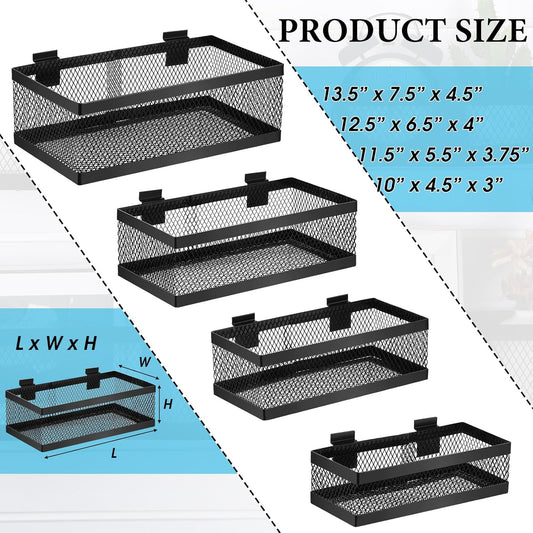 Coume 4 Pcs Black Slatwall Baskets 4 Size Metal Mesh Wire Basket for Slatwall Panels Ventilated Wall Mounted Hanging Accessories for Home Garage Retail Store Display Organizing(13.5 x 7.5 x 4.5 Inch)