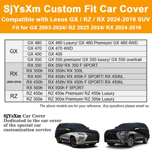 Custom Car Cover Compatible with Lexus GX 2026-2003/TX 2026-2024/LX 1996-2026/RX 2025-2016, All Weather Waterproof Cover with Cotton Lining for GX460 GX470 GX550, Outdoor Rain Sun Snow UV Cover