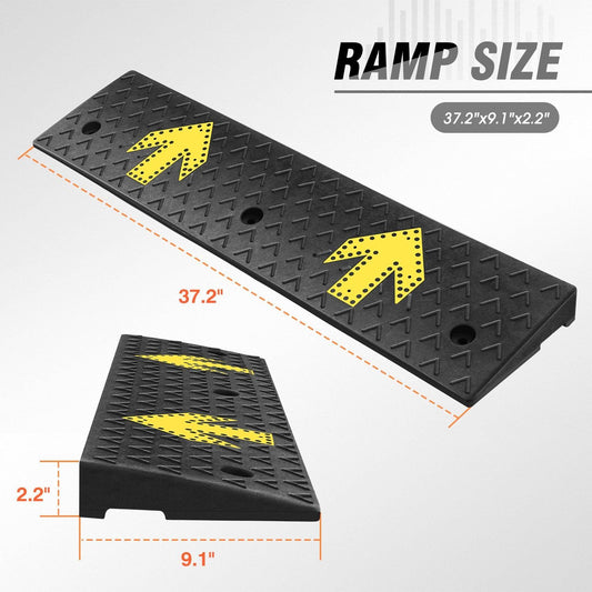 DNA MOTORING 2pcs 2.2" Rise Rubber Arrow Curb Ramp Heavy Duty Loading Driveway Ramps Threshold Ramp 37.2in L x 9.1in W x 2.2in H for Loading Dock, Warehouse, Wheelchair, Motorcycles, Cars, TOOLS-00648