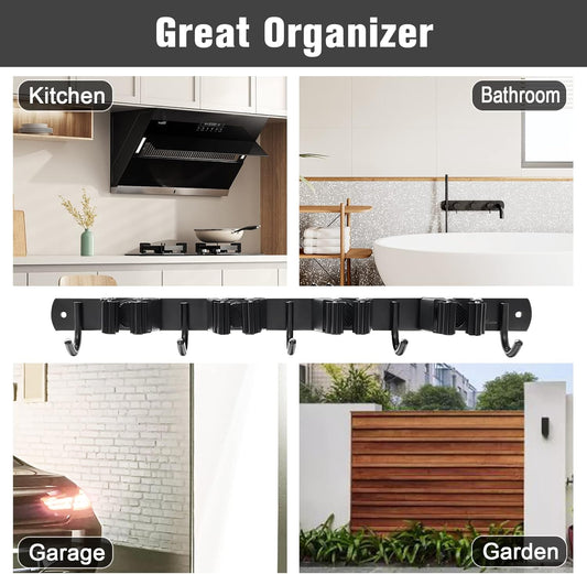 2 Pack Mop and Broom Holder Wall Mount, Non-slip Broom Hanger Wall Mount, Heavy Duty Mop Broom Organizer for Kitchen Garden Garage Laundry Room Wall Decor Organization and Storage Black 3R4H
