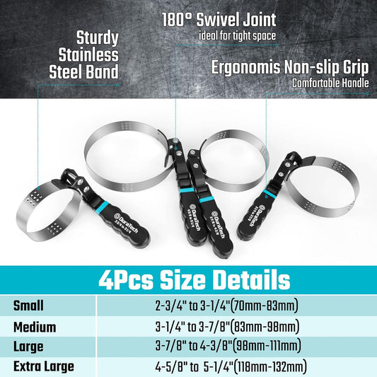 DURATECH 8-Piece Oil Filter Swivel Wrench Set, Wrenches Cover 2-3/4" to 5-1/4", 9" & 12" Adjustable Oil Filter Pliers, Universal 3-Jaw Removal Tool with 1/2" to 3/8" Adapter, Organized in Storage Case