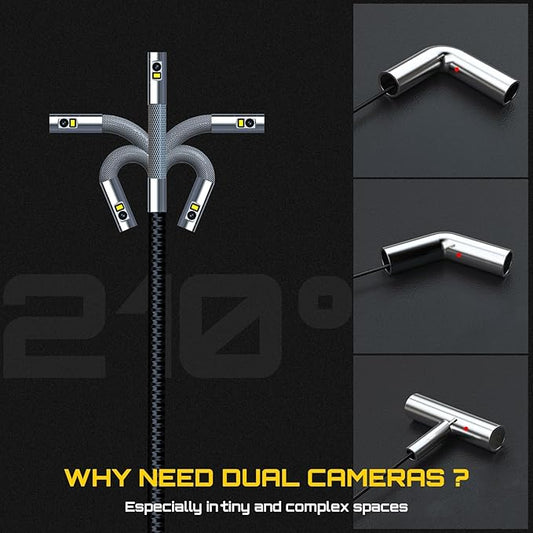 DXZtoz Dual-Lens Articulating Borescope, 6.5mm Slim Probe, Two-Way 210°Rotate Industrial Endoscope, 5'' Dual Screen Inspection Camera with Light for Aircraft Automotive Mechanic Electrician-5FT