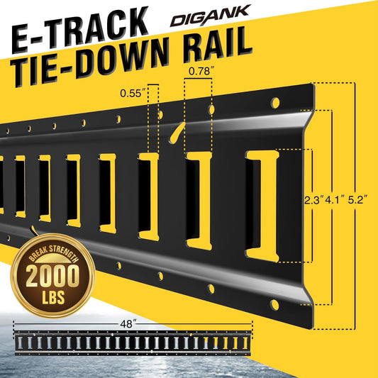 E Track 4'(2 Pack) with Powder-Coated Steel Trailer Tie Down for Garages, Trucks, Pickups, and Vans, E-Track Rail Reliable Cargo Restraint (Screws Not Included)