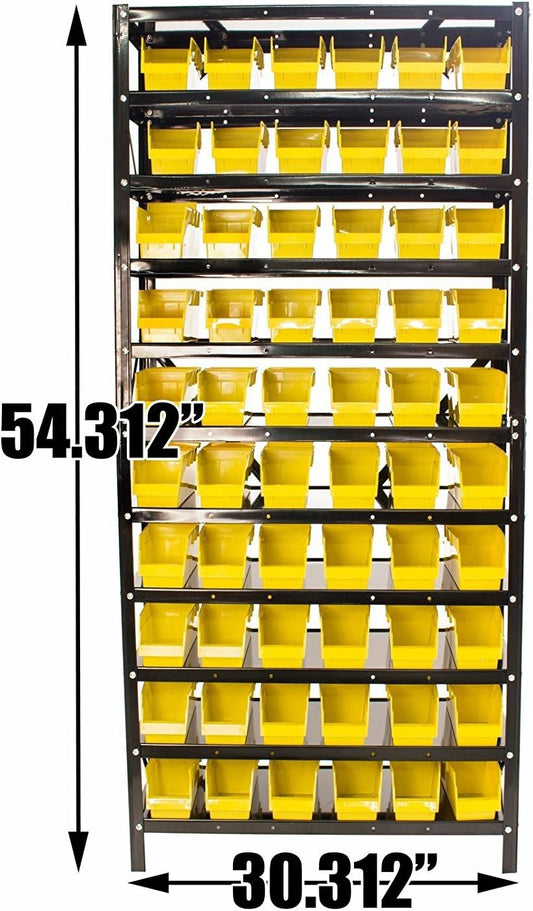 Erie Tools TLPB60 60 Parts Bin Shelving Organize with Plastic Bins for Garage, Shop, and Home Storage