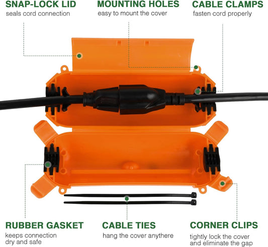 Flemoon [3 Pack] Outdoor Extension Cord Safety Cover with Waterproof Seal, Weatherproof Electrical Connection Box to Protect Outdoor Outlet, Plug, Socket, Christmas Holiday Decoration Light, Orange