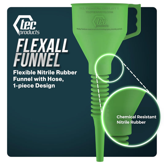 FlexAll Long Flexible Funnel for Automotive Use - Durable Nitrile Rubber - Ideal for Car Oil Change, Transmission Funnel Fluid, Diesel, Fuel, Gas - Made in USA - Green (16 x 5 Inches)