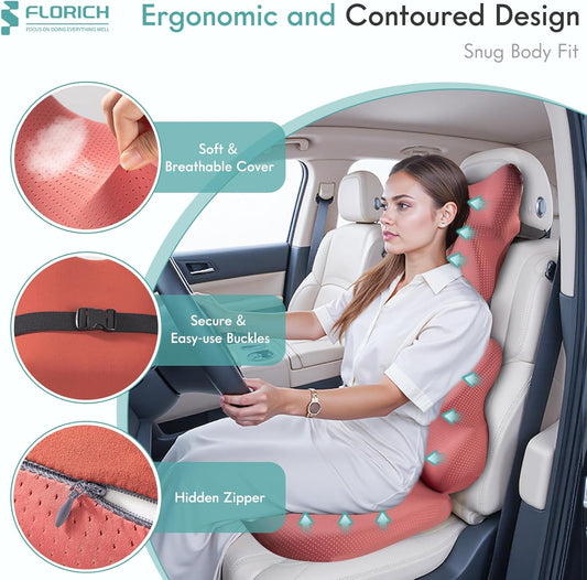 FLORICH Car Seat Cushion and Lumbar Support Pillow for Office Chair Car, Ergonomic Memory Foam, Relieves Back Sciatica Pain, Pressure-Relieving Back Support for Car, Office Chair & Wheelchair - Red